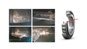 برای این امر از یک آینه کوچک و میله ای سرگرد (همانند آنچه در دندانپزشکی بکار برده می شود) جهت بررسی شیارها ، قفسه و اجزا غلتشی استفاده نمائید. در مورد وجود شیار ، خش ، ترک ، تغییر آینه ای شدن سطوح دقت نمایید. یک برینگ سالم می توانند مجدا نصب و استفاده گردد